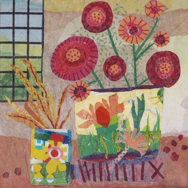 Plastic Bags, Stitching Sequins & Nails on Cradled Board